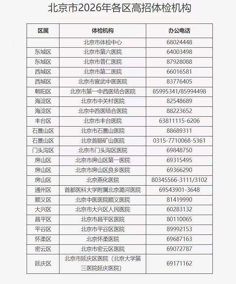 1月23日,北京教育考试院发布《北京市2026年普通高等学校招生体检考生须知》,全市高招体检将于3月2日至3月31日进行。